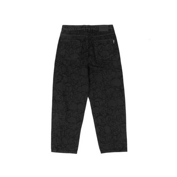 I jeans Casper Bury di Wasted Paris sono realizzati in denim di cotone pesante. Presentano un'immagine Bury stampata al laser su tutta la gamba.